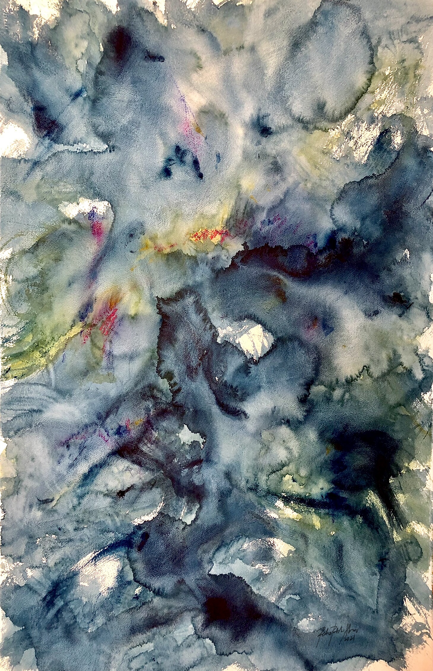 Serie Fluvial n° 1 / 2021 Acuarela y lápiz sobre papel Arches. 103 x 67 cms. 40 35/64 x 26 3/8 in.